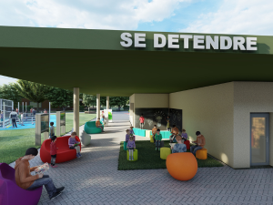 Zone calme protégée : des bancs avec dossiers, une pergola ou des voiles d'ombrage, éventuellement une bibliothèque extérieure. Cet espace attire naturellement les élèves qui ne veulent pas courir. Souvent majoritairement des filles, mais pas seulement, des garçons introvertis, des enfants fatigués, des groupes qui préfèrent discuter.